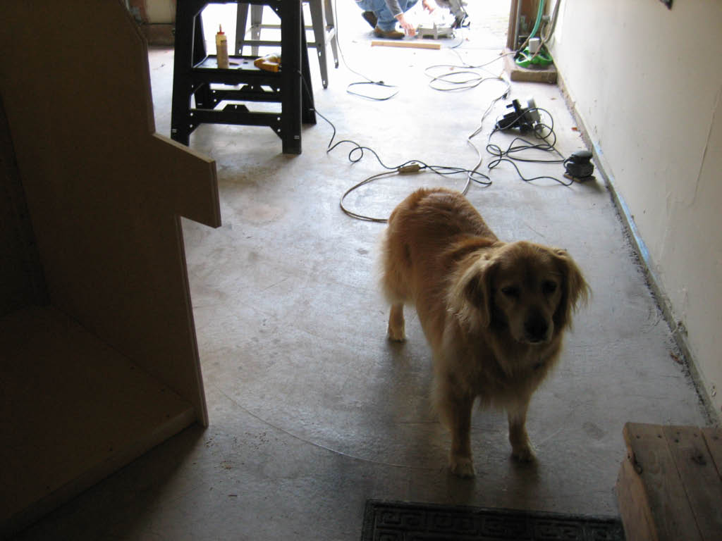 Our dog (Trixie) is normally terrified of power tools. But she braved the garage