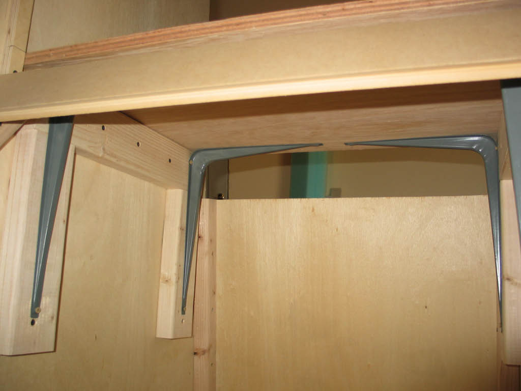 | Construction continued with the monitor shelf. Here I think we went a